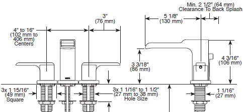 - Widespread - 4" (102 mm) to 16" (406 mm) centers.